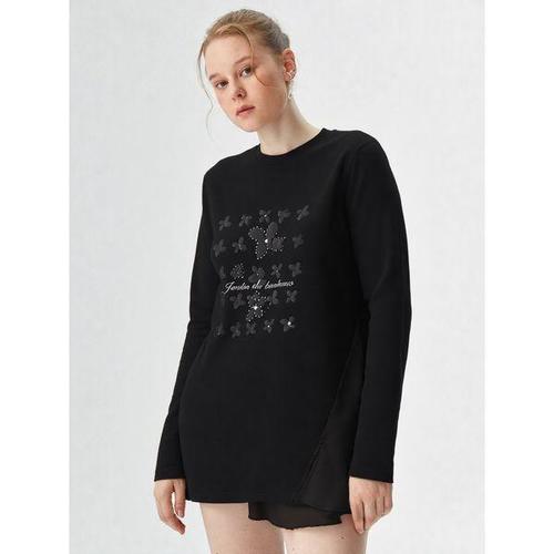 [샤트렌]블랙 플라워 프린팅 셔링 티셔츠 HCBSTS205