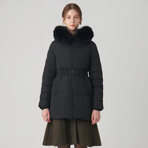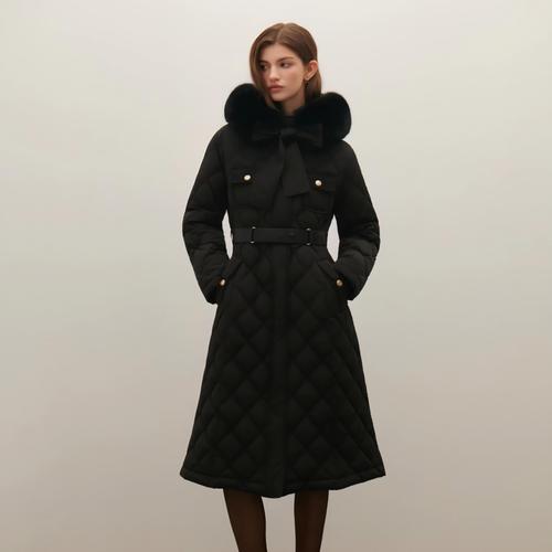 [샤틴]폭스퍼 벨티드 퀼팅 롱 구스다운 패딩/S254B802