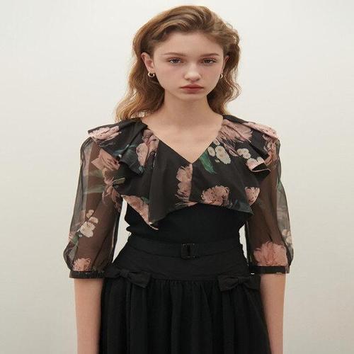 [샤틴]프린트 쉬폰 러플 블라우스/S253B261