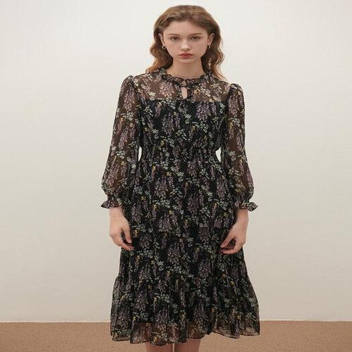 [샤틴]플라워 러플 벨티드 원피스/S253B655