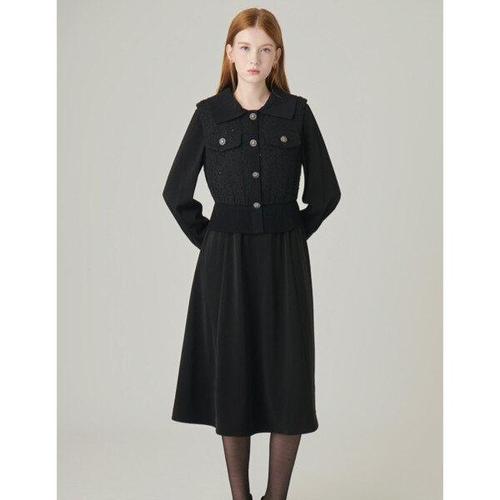 [샤틴]니트 레이어드 트위드 원피스/S254B952