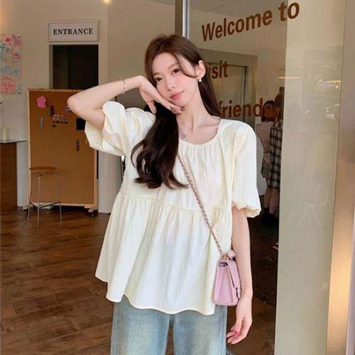 쇼매인 여성 여름 벌룬 소매 빅사이즈 루즈핏 블라우스 반팔 셔츠