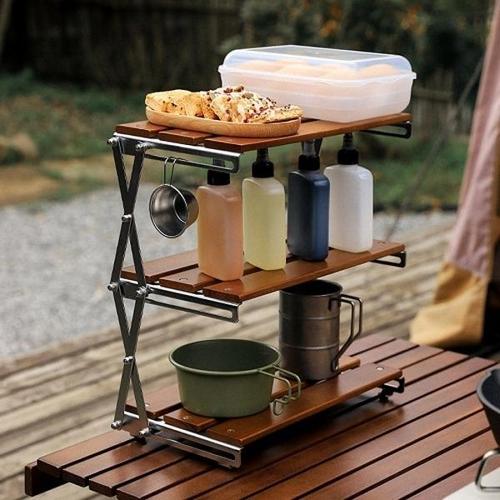 [BZI3KKKL_51D4]우드 3단 접이식 경량 캠핑 선반 쉘프
