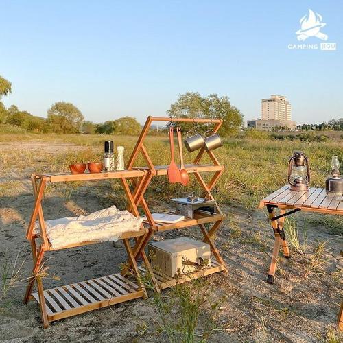 [JHP0RRRS_51D4]우드 3단 경량선반 접이식 캠핑 쉘프
