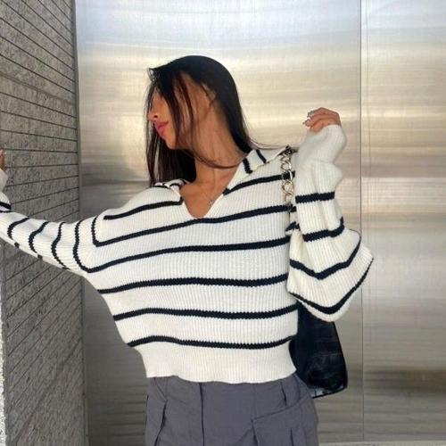 [다잇템][다잇템] 여자 줄무늬 세미크롭 세라카라 벌룬 FW 골지 니트_18575093_588872