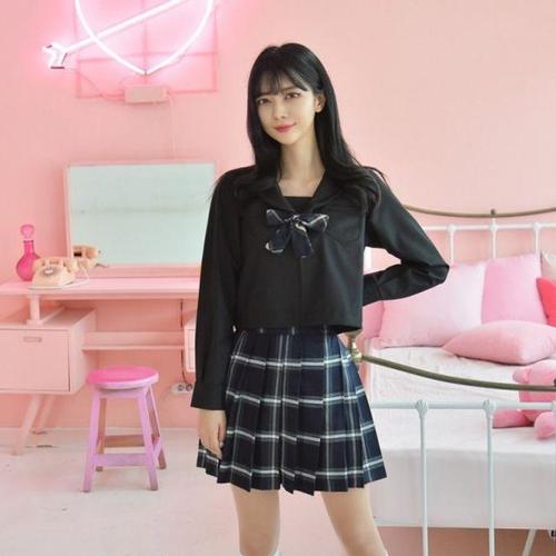 [셀럽하우스]교복몰 DSUO7529 일본교복 세트 블랙 긴팔 세라복 체크 하늘하