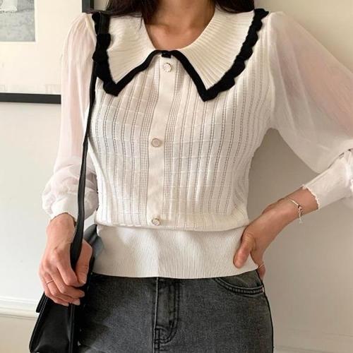 [다잇템][다잇템] 여자 리본 귀여운 화이트 마원단 콘트라스트 세라카라 블라우스_17189938_588872
