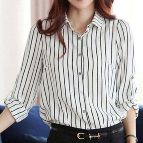 [에이치플러스몰]세로 스트라이프 여성 고급 남방 블라우스 오피스 셔츠