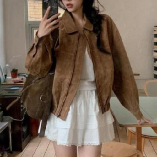 [라일리여성의류] Rly 루즈핏 여자 스웨이드 자켓 캐주얼 여자 세무 자