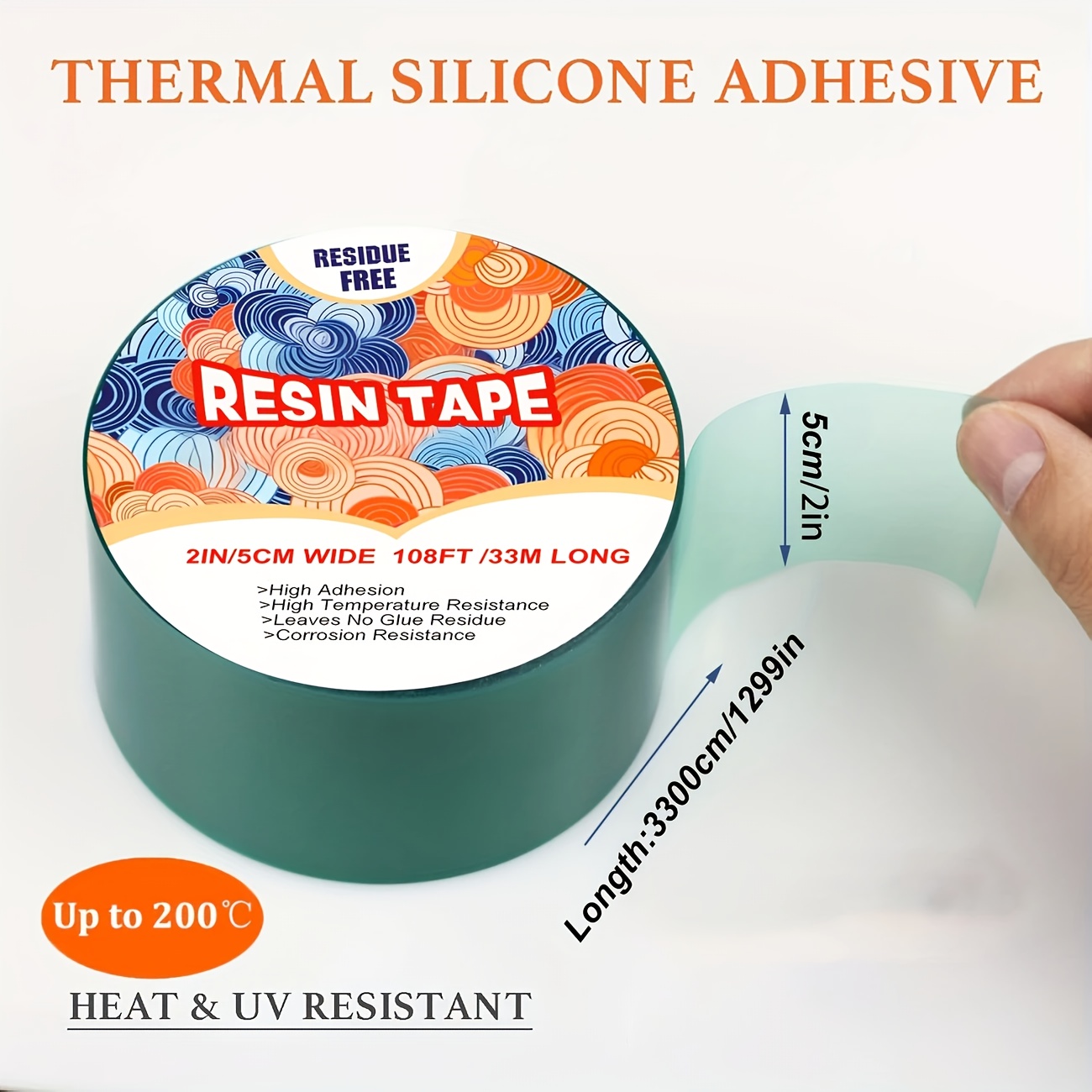 TEMU 고온 내성 에폭시 레진 UV 테이프 | 고열 방지 접착 릴리스 테이프, 쉽게 벗겨지는 접착제 (5cm x 33미터, 그린) - 리버 테이블, 보석 제작 및 공예용 전문가와 애호가를 위한 제품