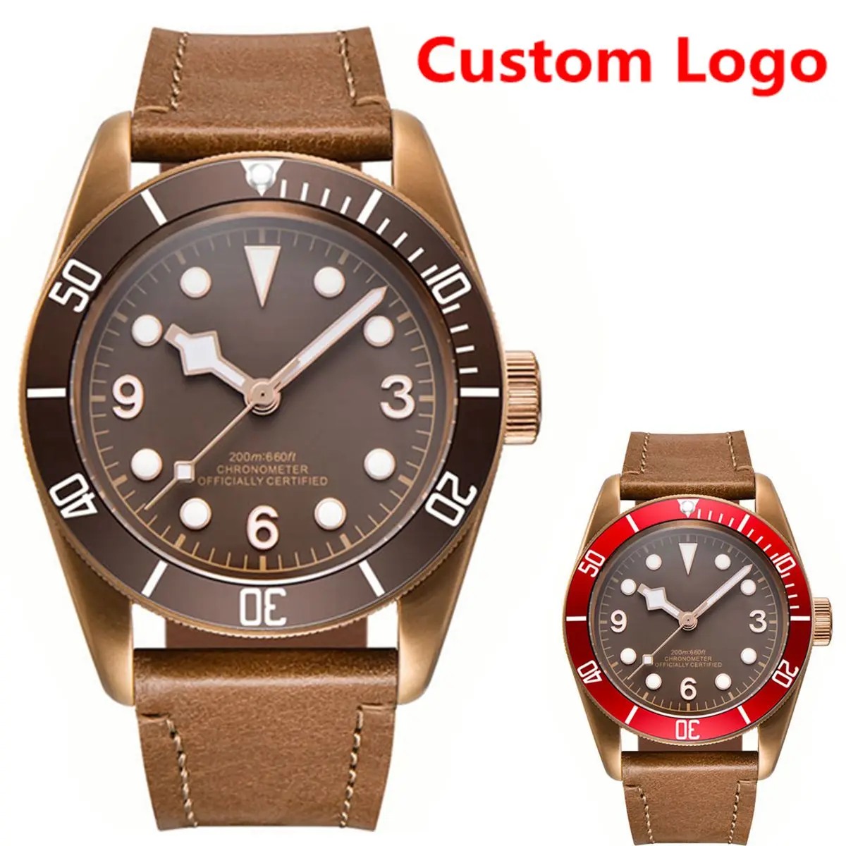 커스텀 로고 시계 남성용 NH35A 오토매틱 기계식 손목시계 스포츠 사파이어 야광 밀리터리 커피 케이스 방수 100M 레로즈