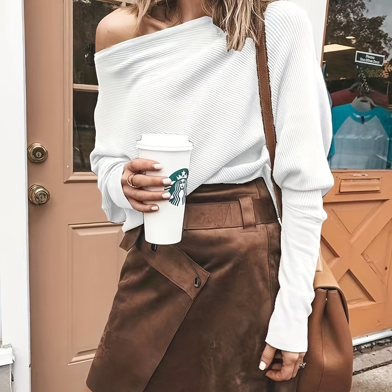 TEMU 여성용 오프숄더 티셔츠 - 우아한 배트윙 슬리브 블라우스, 사무실부터 파티까지의 세련된 상의, 기계세탁 가능한 여성 탑, 일상 & 정장용 캐주얼 셔츠, 주름 장식 팔꿈치 소매, 단색 디자인