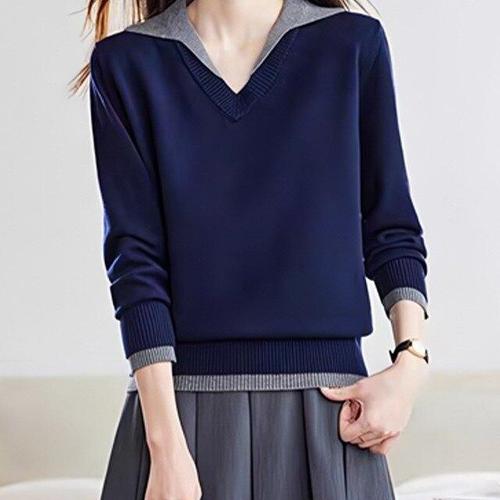 [팬텀] [가격인하] 여성 세일러 숄 단가라 배색 니트