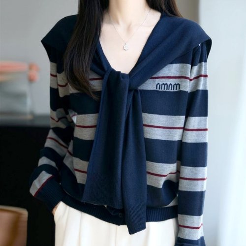 [다잇템]여자 단추 부클니트 나들이 세일러카라 가디건