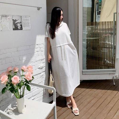 데님 하객 세일러 카라 온나핏 롱니트 롱 허리 WFKOIXR