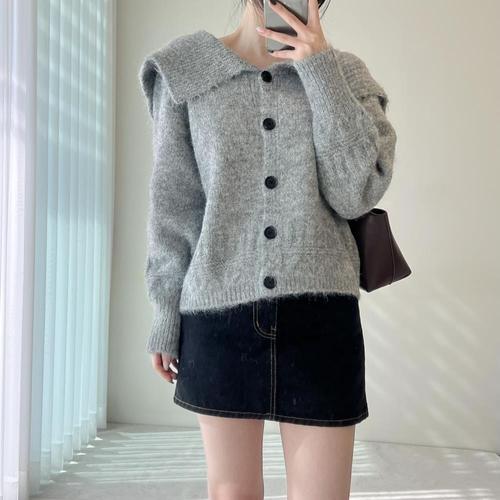 [옷자락] 여자 겨울 데이트룩 세일러카라 버튼 부클니트 가디건