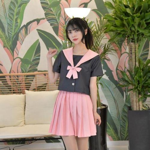 [셀럽하우스]교복몰 QHWV4177 세트 반팔 세라복 교복 네이비앤핑크 러블리