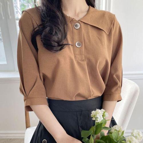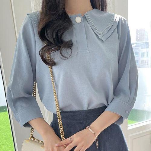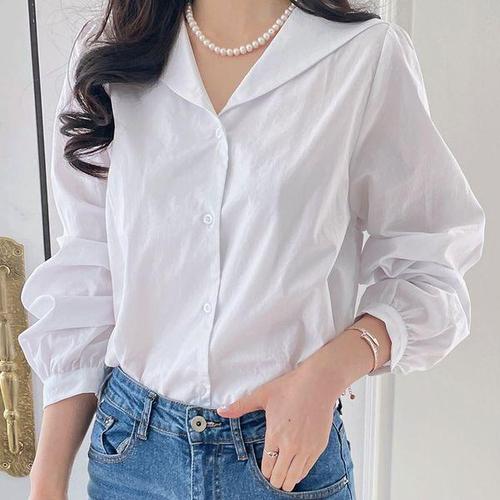 [다잇템_패션]여자 큐빅단추 세일러카라 레이스 SS 블라우스