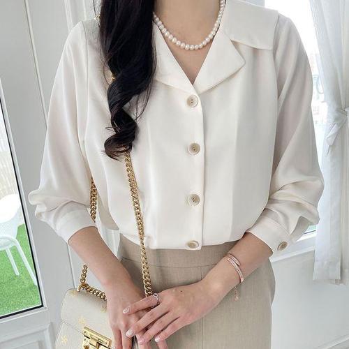 [1+1+1] 로로비 여성 슬림 스판 셔츠 블라우스 화이트 블랙 블루 핑크