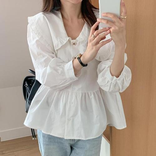 [엄지척]프릴 세일러 빅카라 A라인 청순 블라우스_19650449_667501