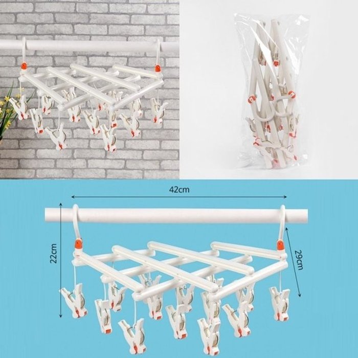엄지척 자바라 빨래집게 건조대 14p 접이식 속옷건조대