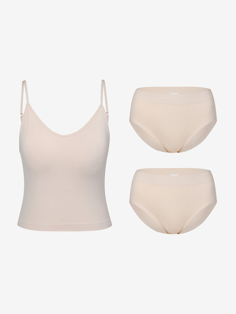 [세컨스킨] [SET] 심리스 뱀부 베이직 캐미브라 삼각팬티 2종