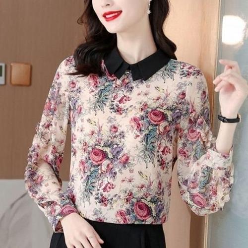 얇은 블라우스 플라워 여자 3색 쉬폰 시스루 봄가을 WFLQ89U