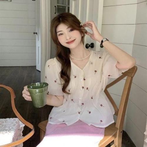 [엄지척]쉬폰 소재 플라워 패턴 여리핏 블라우스 셔츠_19649770_667501
