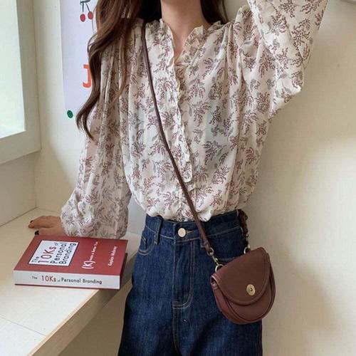 여성 긴팔 플라워 쉬폰 블라우스 루즈핏