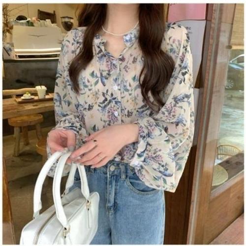 [엄지척]여성 긴팔 시스루 쉬폰 블라우스 잔꽃 플라워블라우스_19649500_667501