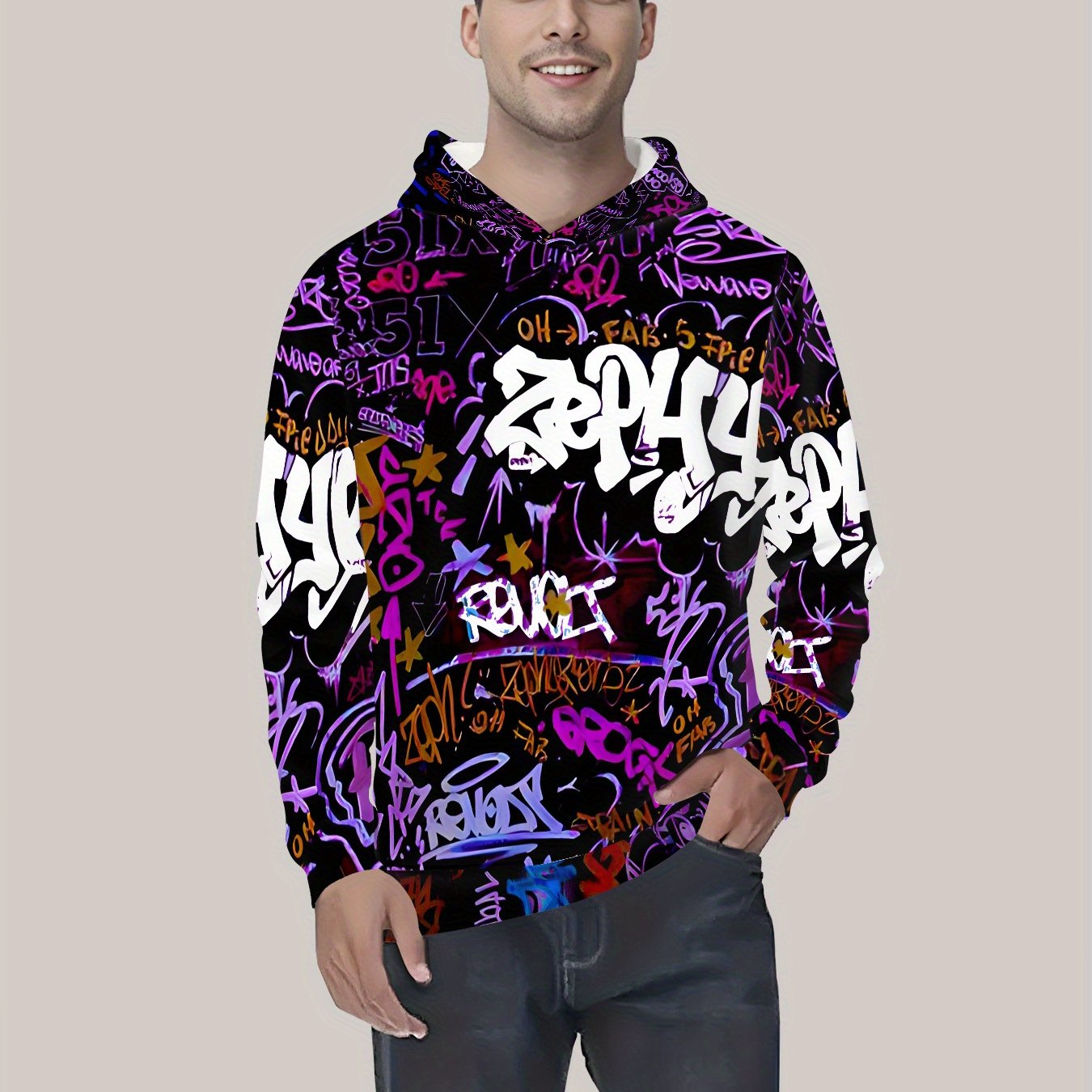 TEMU 남성용 후드티 - 폰트가 있는 도시 스트리트웨어 풀오버, 보라/검정/흰색/회색 컬러블록, 레귤러 핏 스웨트셔츠, 가을/겨울 캐주얼 아웃도어, 일상 및 특별한 날을 위한 편안한 의류, 대담한 그래픽 프린트, 소프트 소재, 청년용