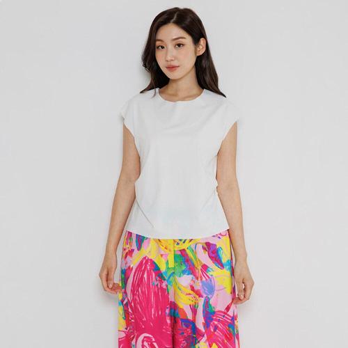 아이엠몽 여성 주름 셔링 화이트 나시 티셔츠
