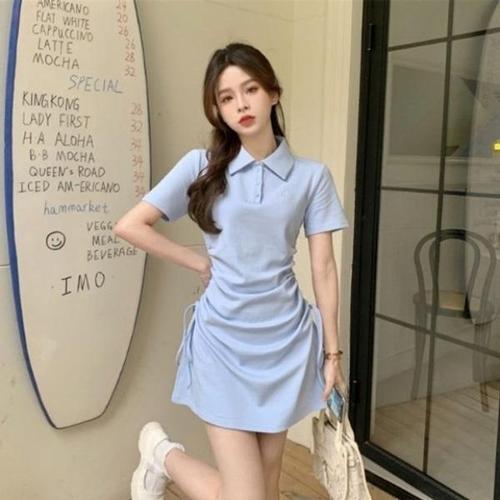 [엄지척]여름 카라셔츠 원피스 반팔 셔링 슬림 하객룩 골지 미_19869804_667501