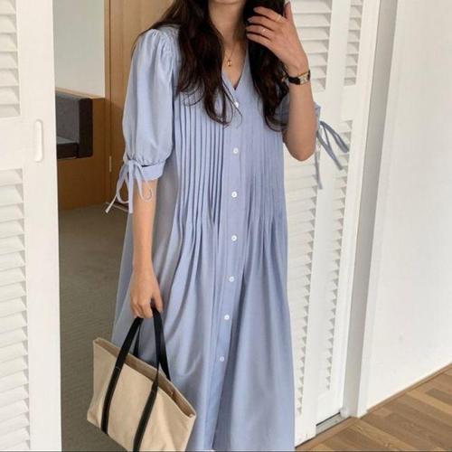 롱원피스 여자 여름 루즈핏 셔츠 원피스 카라 셔링 데일리룩