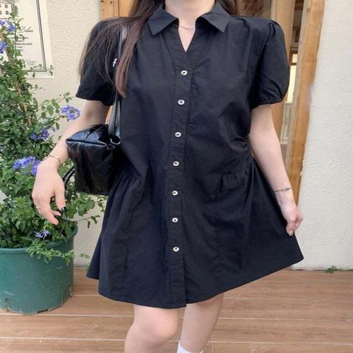 디테일 숏 셔링 원피스 셔츠형 사이드 미니
