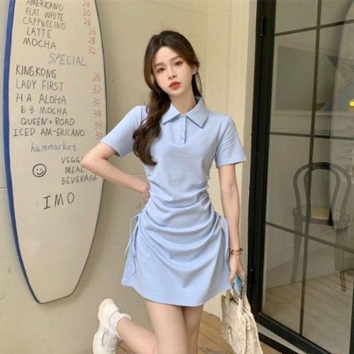 [셀럽하우스]여름 OWCK0310 카라셔츠 원피스 반팔 셔링 슬림 하객룩 골지 미