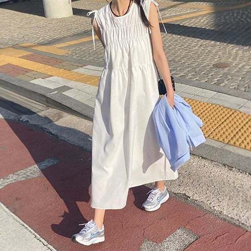 [셀럽하우스]셔링 XKAE5651 스트링 나시 롱 원피스