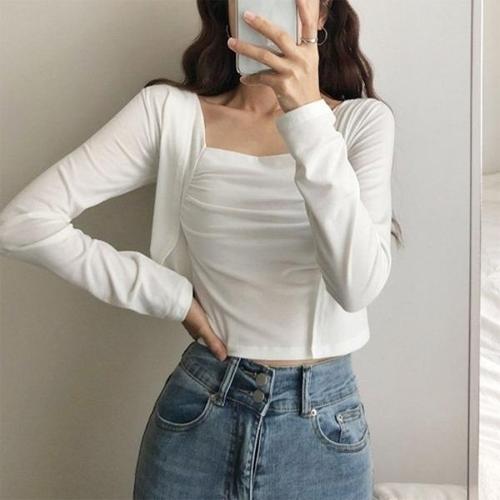 [다잇템]여자 투피스 셔링 스퀘어 크롭나시 가디건 세트