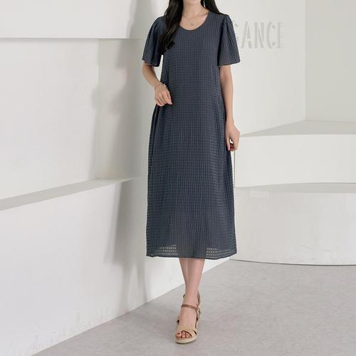 [로즈미] [55~77] 비앙 퍼프셔링 반팔 원피스