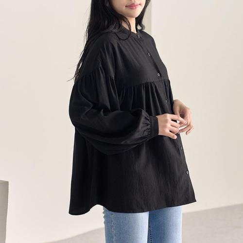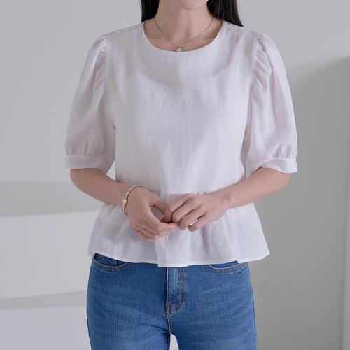 [로즈미] [55~77] 엘모 린넨 퍼프 셔링 블라우스