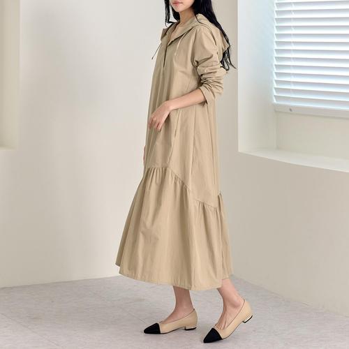 [로즈미] [55~77] 리노 셔링 후드원피스