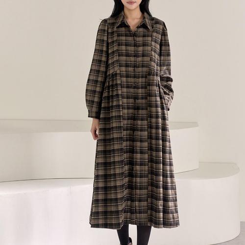 [로즈미] [55~77] 포어 체크 셔링 겉기모 원피스