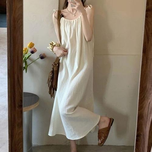 비비에모 리본 스트랩 슬림핏 셔링 롱 원피스 06409