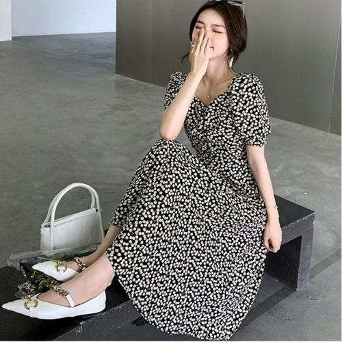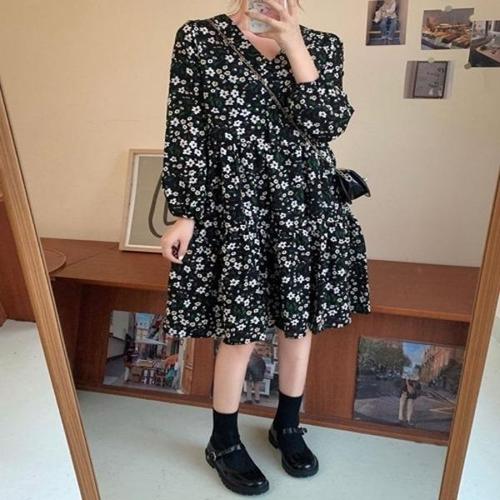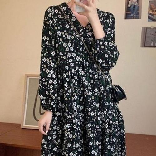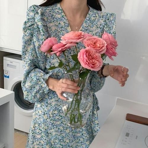 [엄지척]플라워원피스 쉬폰원피스 셔링 롱원피스 브이넥 여자_19870690_667501
