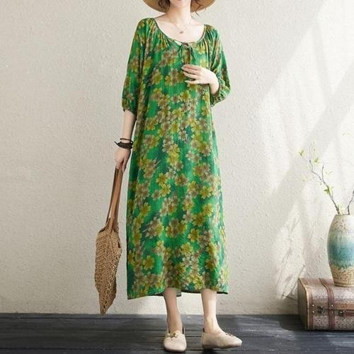 [엄지척]F007286_(허리끈) 린넨 반팔 셔링루즈핏 롱원피스_19910980_667501