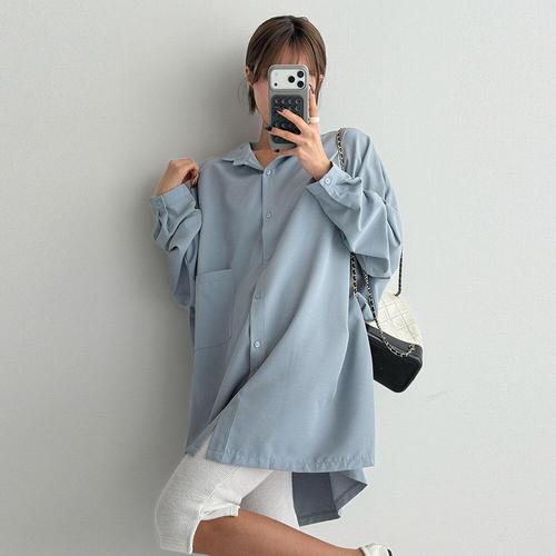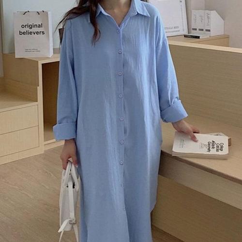 [유야]여성 옆단추 박시 무지 롱 셔츠 원피스 -FNB0105- 봄 가을