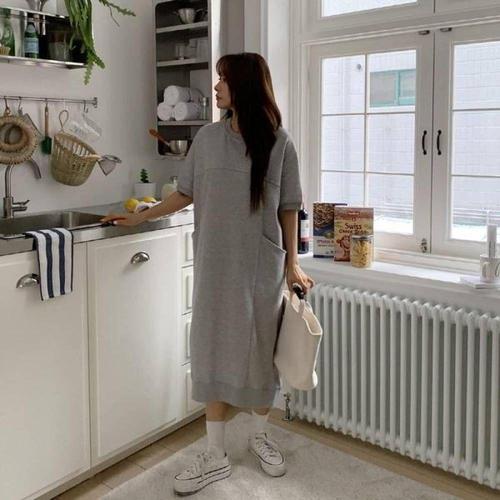 핑크유- 셔츠 카라 원피스, 루즈핏, 롱 빅사이즈 원피스 임부복 하객룩