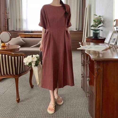 여성 여름 패션 시원한 린넨 롱 루즈핏 원피스 셔츠