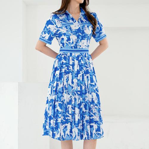 [로즈미] [55~77] 퍼블드로잉 셔츠 플리츠원피스