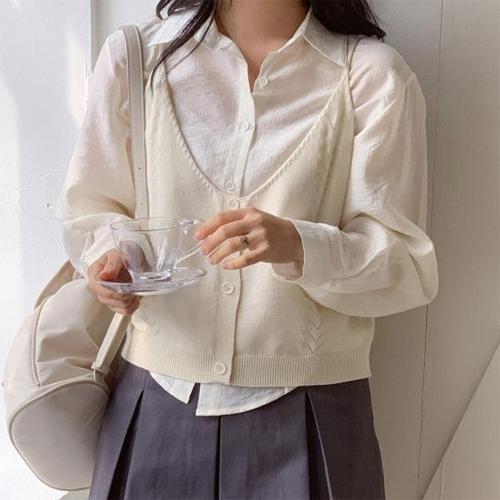 [신상오픈런]|CMD2372|니트뷔스티에 꽈배기 슬림핏 여자 무지셔츠 상의세트_19816544_597559